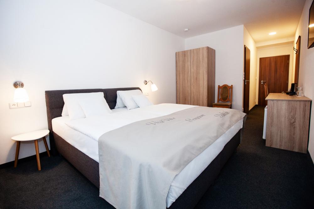 Dvoulůžkový pokoj Economy se nachází v prvním patře přímo nad recepcí a restaurací penzionu. Pokoj se nenachází v nové části, přesto disponuje veškerým komfortem jako pokoje nové. Pokoj Economy nabízí vlastní koupelnu se sprchou a toaletou, velkou manželskou postel, TV s plochou obrazovkou, konvici, set na přípravu kávy a čaje. Základní toaletní potřeby mají hosté zdarma. Parkování je možné přímo před penzionem.
