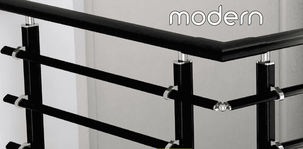 Modern - Vyniká nadčasovým designem. Zábradlí je zhotoveno z hranatých a oválných profilů, na výběr různé modifikace výplní – hliník ,sklo, dřevo. Tato modelová řada se nedá použít na schodiště.