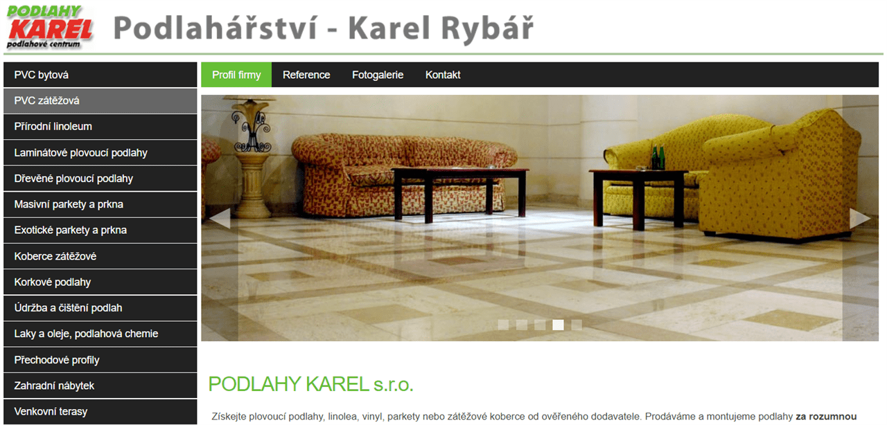 Podlahy Karel s. r. o. je ověřeným dodavatelem podlah v okolí Teplic, Ústí nad Labem, Děčína, Mostu a Litoměřic. Plovoucí podlahy, dřevěné podlahy, koberce i linolea montujeme vždy s takovou pečlivostí, kterou bychom sami požadovali, kdybychom byli našimi zákazníky. Z reakcí klientů víme, že oceňují naše vstřícné a férové jednání, díky kterému je výběr té správné podlahy mnohem snazší a rovněž pokládka probíhá bez jakýchkoliv starostí na straně zákazníka. Přesvědčte se o kvalitě naší práce.