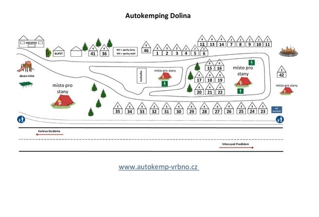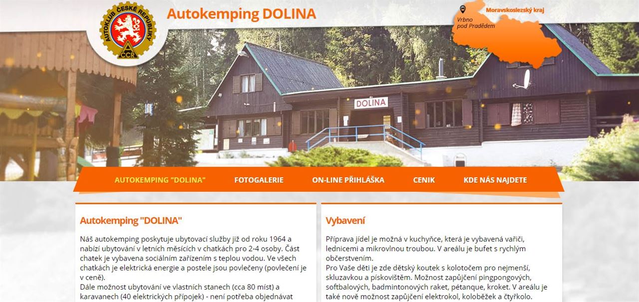Autokemping DOLINA nabízí ubytování v letních měsících ve vlastních chatkách pro 3–4 osoby s celkem 124 lůžky.